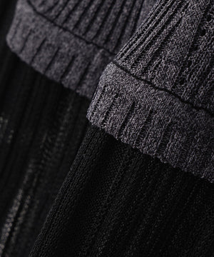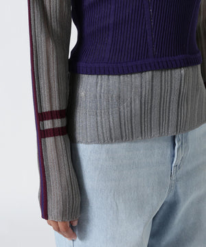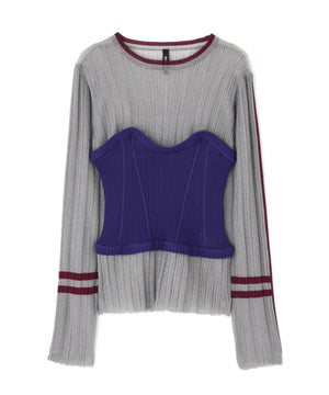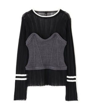 ベアトップシアーニット。ライン入りのリブニットにベアトップをレイヤードしたようなデザイン。