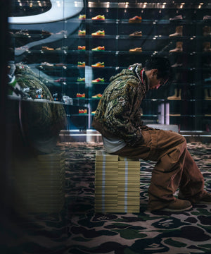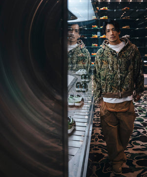 BAPE(ベイプ)を象徴するSHARK HOODIEの過去のアーカイブからインスピレーションを得て、独自の視点で再構築された特別な一着。
