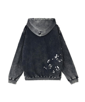 ブリーチ、ダメージ加工を施し、装飾が加えられたオーバーサイズのプルオーバーフーディー。