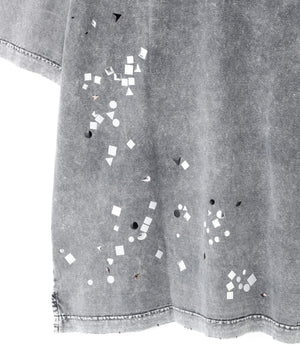 ブリーチ加工を施したTシャツに装飾を加えたデザイン。