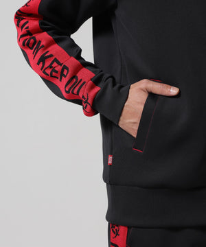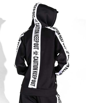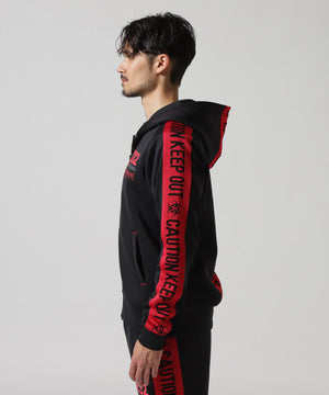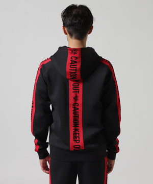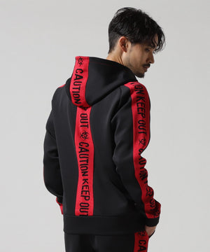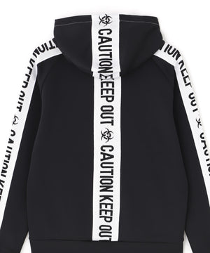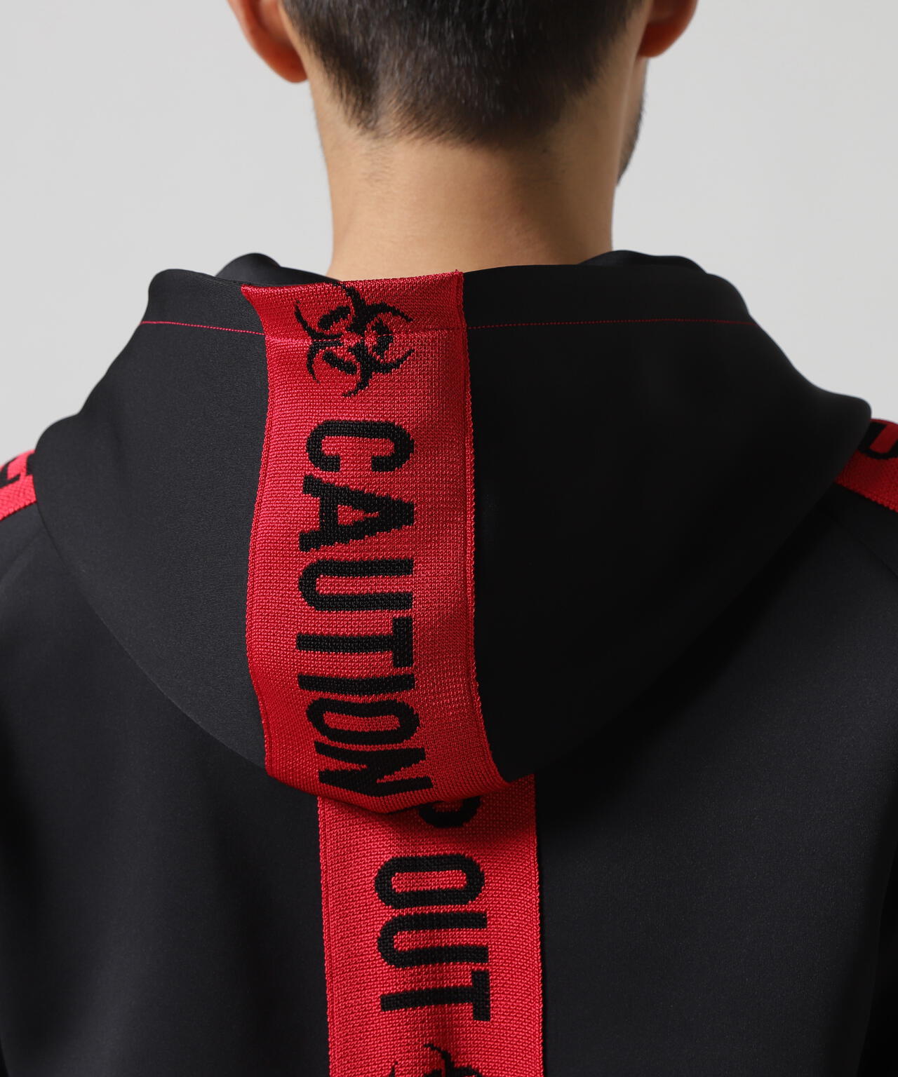 SY32ならではの機能性素材と、beauty・beastお馴染みの「CAUTION KEEPOUT」ロゴテープを両袖やバックスタイルにあしらった新鮮味溢れるデザイン性が目を引きます。