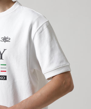 アイコニックなレタリングデザインが目を惹くジャストサイズの半袖Tシャツ。