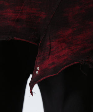 裾部分はレイヤード仕様になっており、アシンメトリーなカッティングとほつれ加工が独特の存在感を放ちます。
