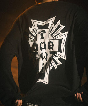 バックのDOGTOWNを象徴するのは「Dogtown Cross」と呼ばれる十字架型のロゴインパクトあるデザインで目を惹きます。