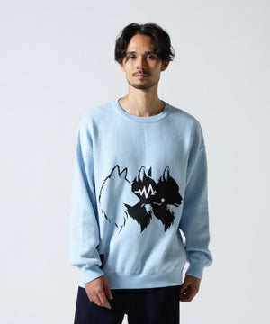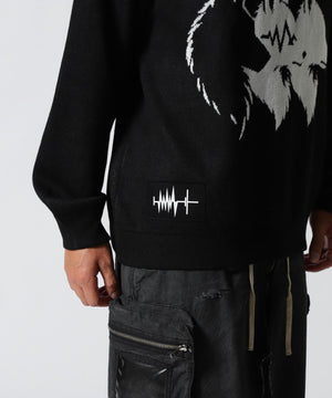 ジャガードニットでオリジナルグラフィックとパッチが施されたニットソーです。