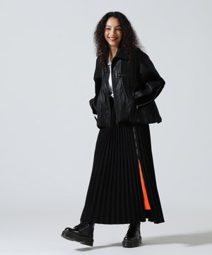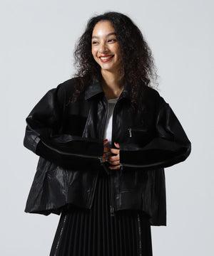 薄くしなやかでヴィンテージ感のあるエコレザーを使ったブルゾン。