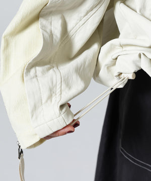 部分的にTRで切り替えたり、袖口や右ポケット上には深みにあるコーデュロイ素材を組み合わせてアクセントに。