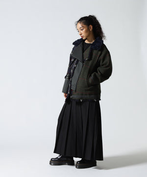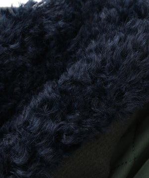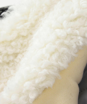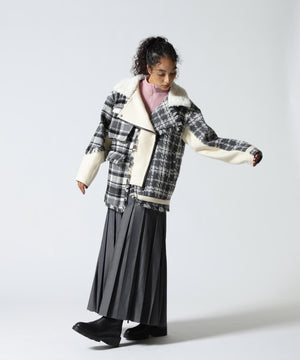 フロントは斜めのジップ開きで、ライダースデザインの上襟はくるくるとした羊のフェイクファーがウォーム感を出してくれます。