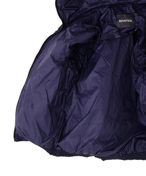 「DIONISIO(ディオニシオ)」の系譜を受け継ぐ、フードトップまで続くダブルファスナー仕様のフルジップアップデザインは、DUVETICAを象徴するブランドアイコンのひとつです。