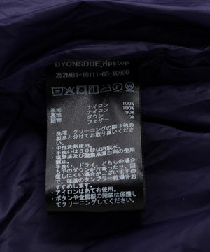 フードトップまで続くダブルファスナーのフルジップアップと、軽快なショートレングスが印象的なダウンジャケット「DYONSDUE Ripstop(ディオンズドゥエ リップストップ)」。