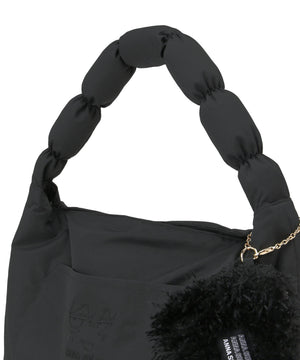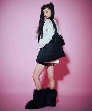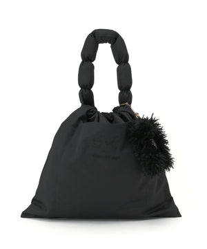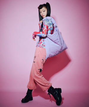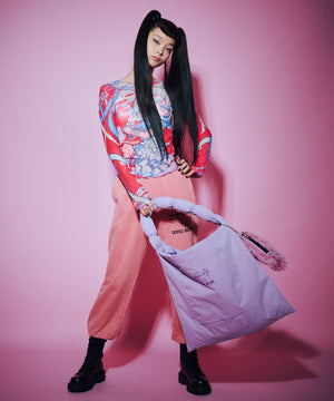 デジタルクリエイター の寺田てらさんとANNA SUI NYCのスペシャルコラボレーション。ポケットの刺繍がアクセントのシンプルなデザインと、コラボオリジナルの総柄プリントを楽しめるリバーシブル仕様。ふんわりとした中綿入りのハンドルは、見た目のキャッチーさだけでなく、軽やかで快適な持ち心地も実現。バックの取り出し口はドローコードで絞ることで巾着型にもなるマルチWAY仕様。ふわふわのファーポーチチャームが、華やかさとさりげない遊び心を添えます。収納力と軽さも兼ね備えており、デイリーからお出かけまで幅広く活躍してくれます。