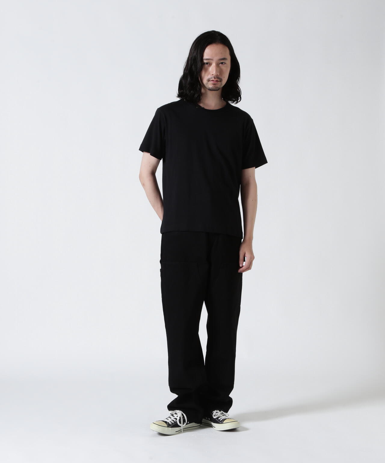 ただスソ幅が20cm以上あるので、足元のシューズはスニーカーからブーツまでと幅広くコーディネイトして頂けます