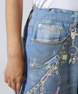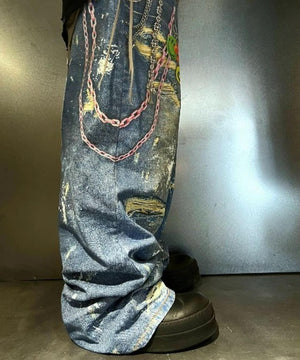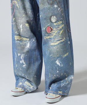オーバーサイズデニムをベースにダメージや加工を繰り返す事で、ヴィンテージの様な風合いに仕上げているデニムをベースに、転写プリントを施した一着。