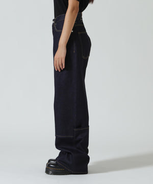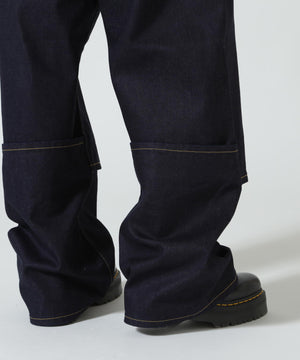 膝下の切り替えディティールで2つのスタイルが楽しめるデニムパンツ。