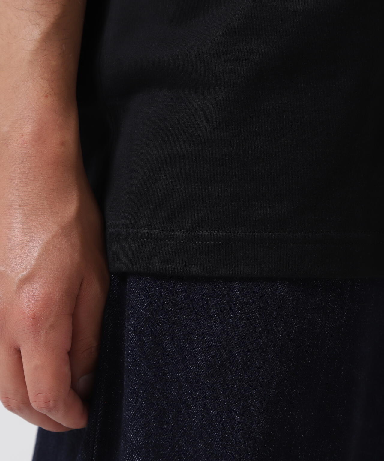 DENHAMのブランドネームロゴをフロントに飾ったアイコニックな仕上がりのTシャツ。