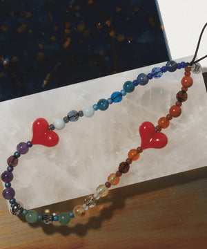 チャクラをイメージした多彩なカラービーズとハートモチーフで存在感抜群。