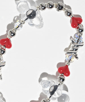 クリスタル、アクリル、ガラス、樹脂ビーズ、耐久性のあるサテンコードを使用し、強い耐久性が持ち味。