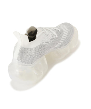 またニットアッパーのアシンメトリーにレイアウトされたシューホールとパターンが抽象的なアウトソールのデザインを引き継いでいます。