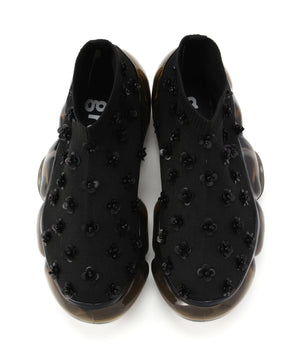 本来、体全体を支えるため頑丈であるべきはずのアウトソールを、あえて流動的で柔らかそうな形状にしてしまったところが遊び心をくすぐるデザインになります。