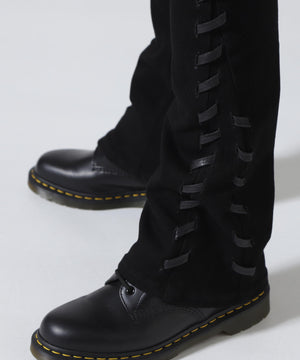 サイドに同色の編み上げが、さりげなく目を惹くデザイン。