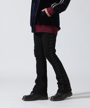 丈が長めで、足元で “たまり(stack)” が出る独特のシルエット。