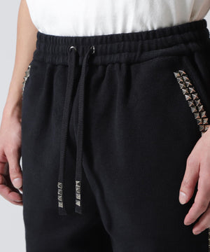 サイドにあしらったピラミッドスタッズが存在感を放つ、デザイン性の高いスウェットパンツ。