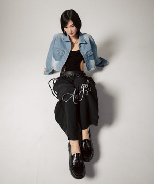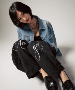 ゆったりシルエットでリラックス感がありつつ、裾に入った“Angel”ロゴ刺繍がコーデのアクセントに。
