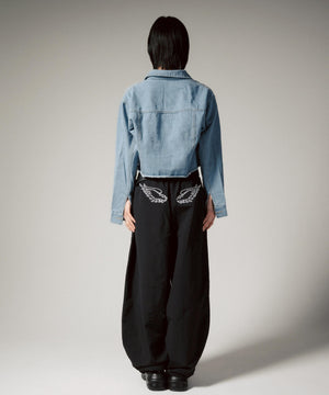 バックには大胆なウイング刺繍を配置し、後ろ姿までしっかり可愛いデザイン。