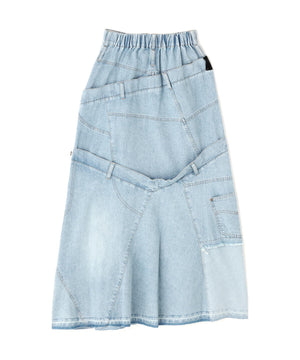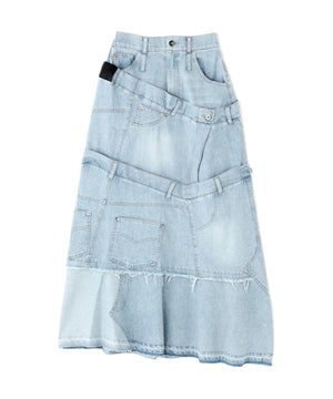 前後関係なく繋げたリメイク風のスカートはまるで4枚のスカートを重ねたような目を惹くデザイン。