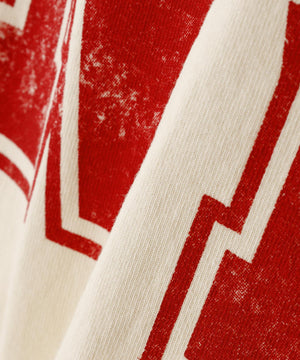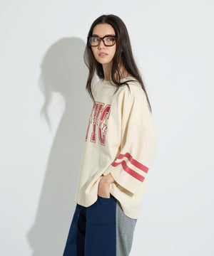フロントにヴィンテージライクなロゴプリントを施し、袖にはスポーティなラインデザインを組み合わせた存在感抜群のワッフルロングスリーブTシャツ。
