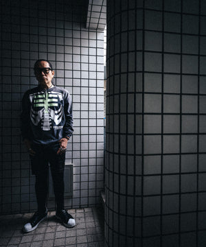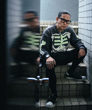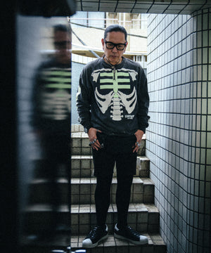 BOUNTY HUNTERを象徴するアイコン「SKULL KUN」のボディの柄をSAINT Mxxxxxx仕様に再構築して、両者の世界観を融合したディテールを随所に採用したデザイン。