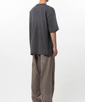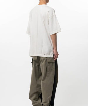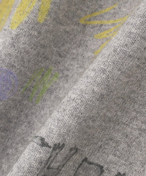 オーバーサイズの半袖Tシャツのフロントに、子供の落書きの様なデザインがプリントされたTシャツ。