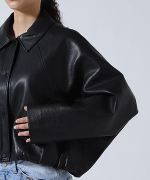 柔らかくて、しなやかな質感が魅力のフェイクレザージャケット。