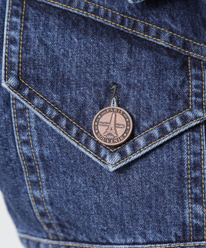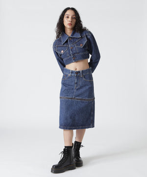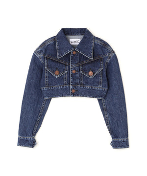 両ブランドの個性が融合した、オリジナルデザインのクロップドデニムジャケット。