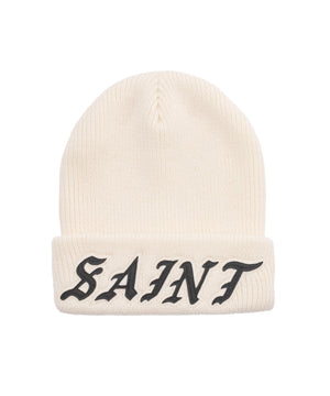 シンプルながら存在感のある「SAINT」ロゴ刺繍が目を引くニット帽。