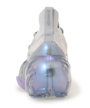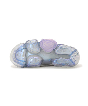 本来、体全体を支えるために硬質であるはずのアウトソールを、あえて流動的でグニュっとした柔らかさを想像させるフォルムに成形しています。