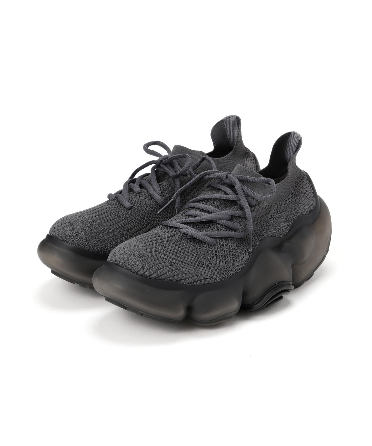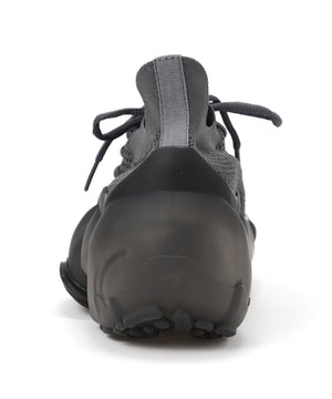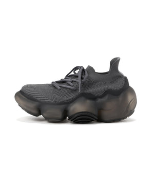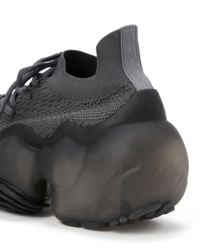 またニットアッパーのアシンメトリーにレイアウトされたシューホールとパターンが抽象的なアウトソールのデザインを引き継いでいる。