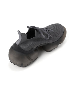 外側につけたラバーパーツがデザインにアクセントを加え、アッパーはボリュームのある靴底とは対照的に華奢な仕上がりとなっている。