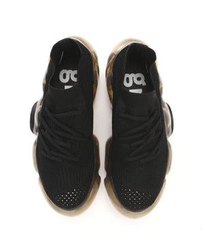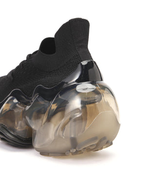 またニットアッパーのアシンメトリーにレイアウトされたシューホールとパターンが抽象的なアウトソールのデザインを引き継いでいます。
