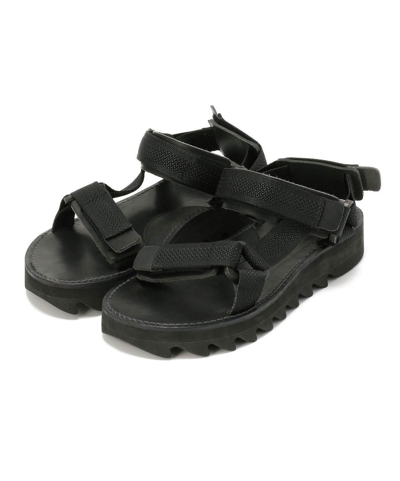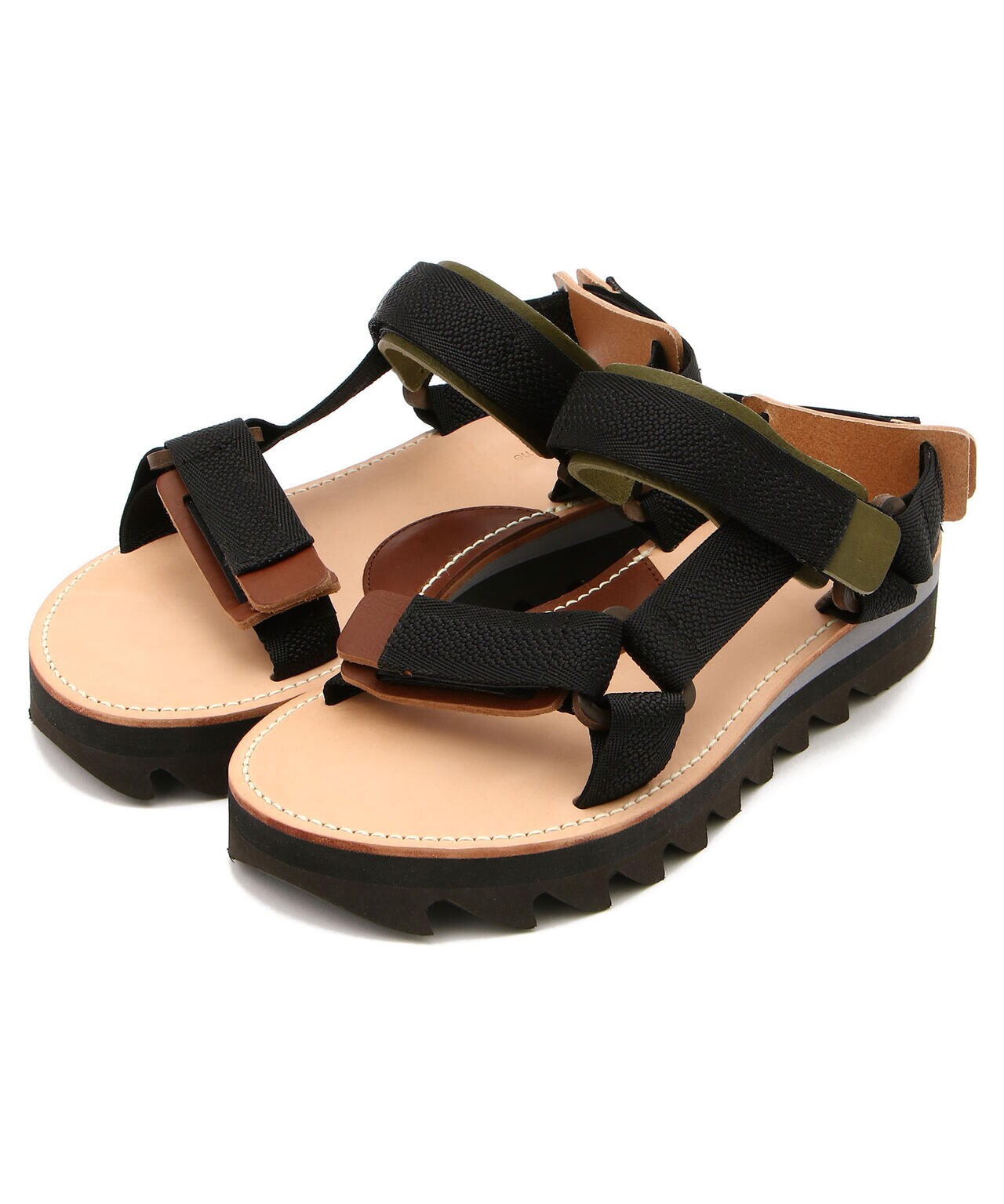 ナイロンテープとカウレザーを合わせたストラップサンダル。