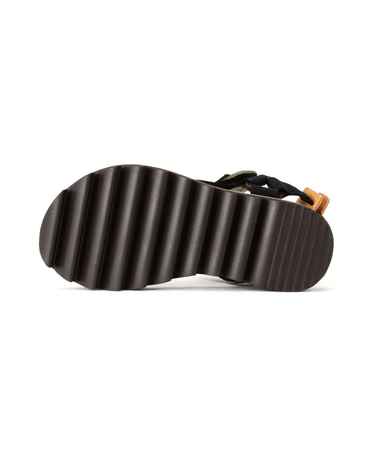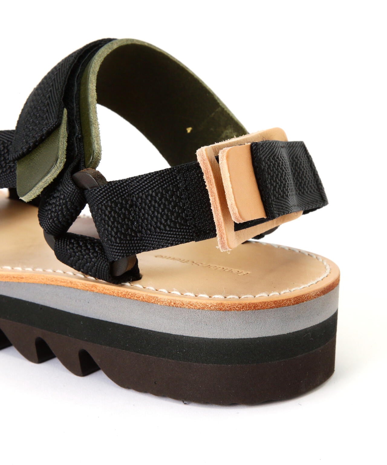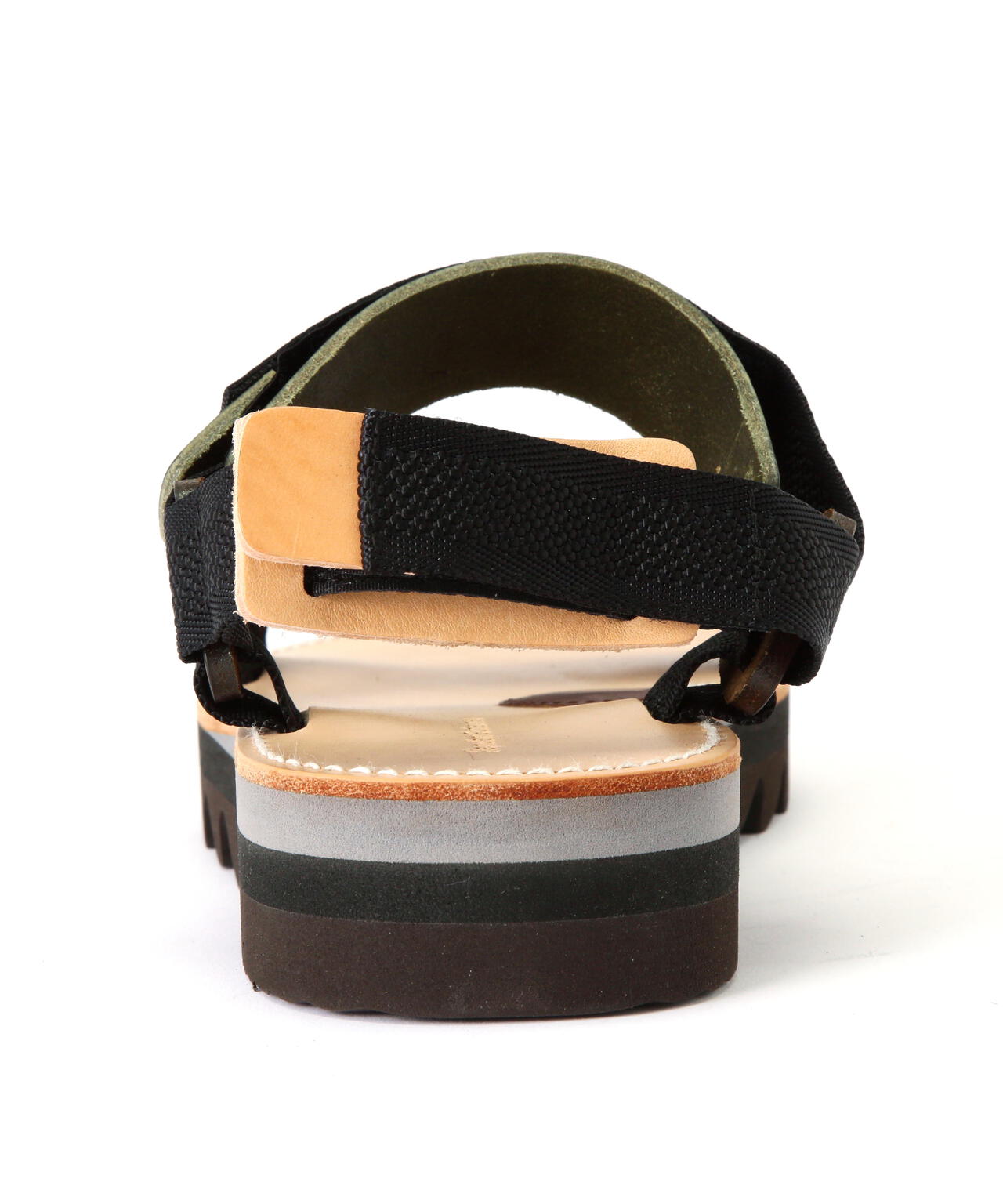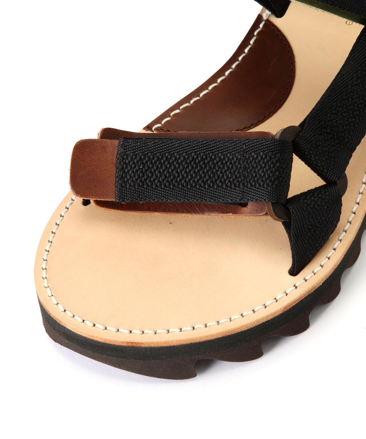 ナイロンテープとカウレザーを合わせたストラップサンダル。