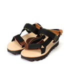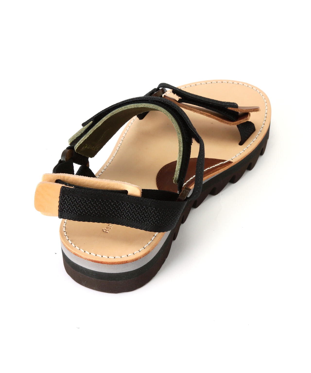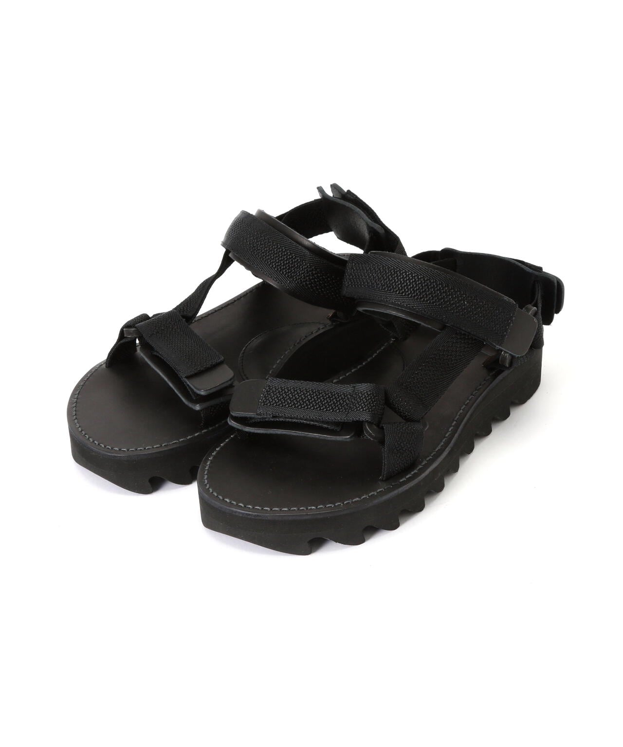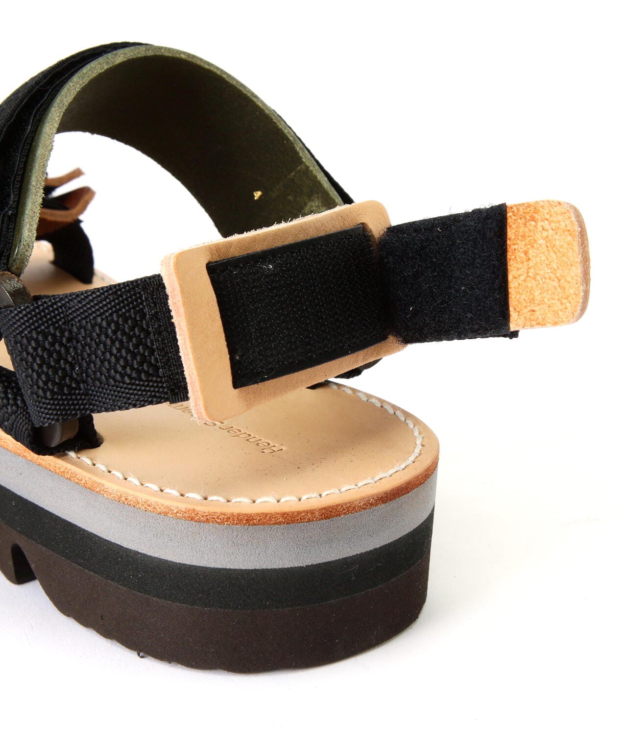 ナイロンテープとカウレザーを合わせたストラップサンダル。