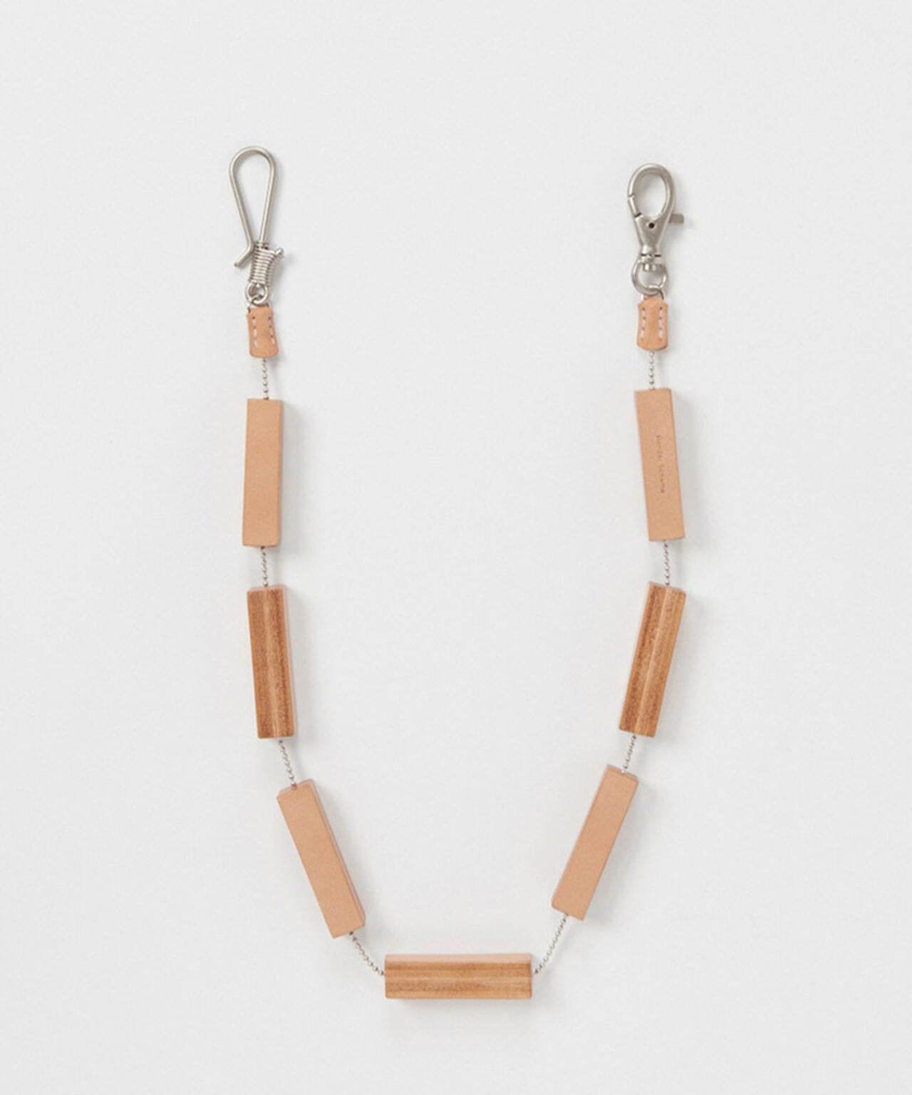 river sideと同じ要領でブロックを作り(このプロダクトのブロックは4層)、ベジタブルタンニン鞣しのカウレザーを使用したウォレットチェーンです。