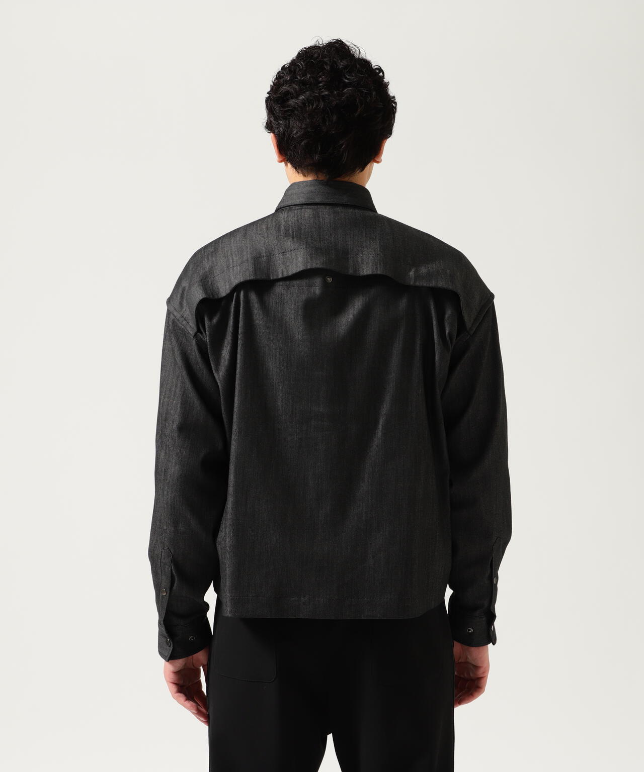 丈は、ショート丈に設定し身幅とアームはゆとりを持たせたシャツブルゾンとして着用可能なシャツとなります。