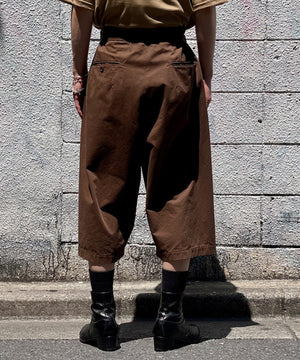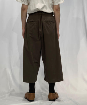 打ち込みの強い薄手の地の素材を使用した8分丈のパンツ。