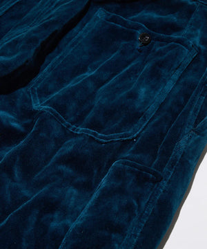 - コットンベルベットに極細のステンレス繊維を織り込むことで形状記憶のような役割により凹凸とシワを生み出し、独特な表情に仕上げた特殊な別注生地