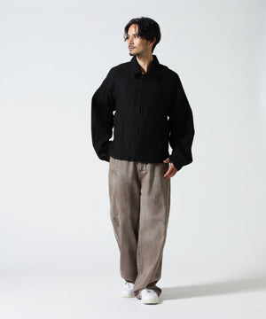ウールリネンの豊かな素材感を引き立てるシンプルなショートジャケット。