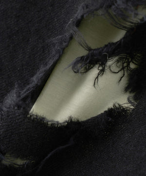 ダメージ加工を全て手作業という、途方も無い工程。それも3段階で分けているので、職人さんからするとたまったもんじゃない。