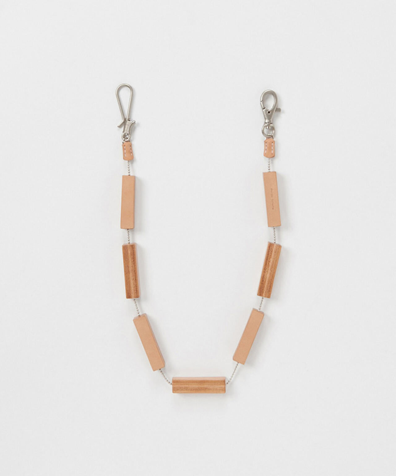 river sideと同じ要領でブロックを作り(このプロダクトのブロックは4層)、ベジタブルタンニン鞣しのカウレザーを使用したウォレットチェーンです。