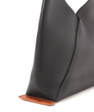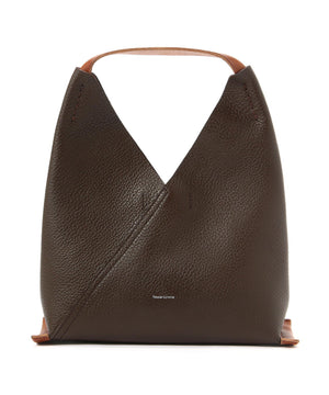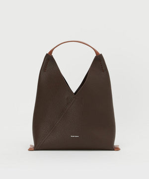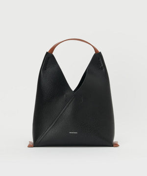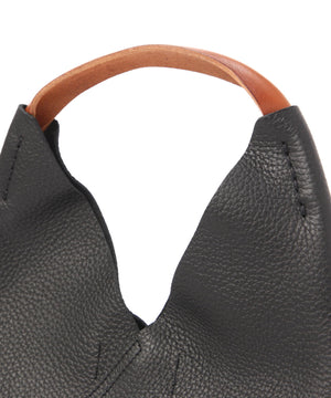 ハンドルストラップを手縫いで縫い付けた三角形状型のレザーバッグ「triangle bag」